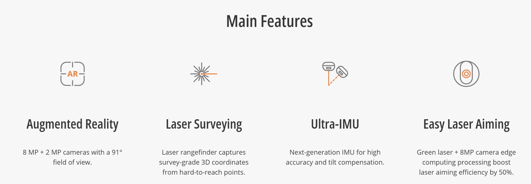 | Features | LandStar software, support Visual Navigation, CAR AR Visual Stakeout, Laser Survey. |