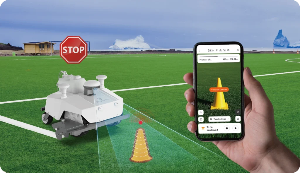 With real-time visual monitoring, front and rear bumper protection, and object detection via a binocular camera system, the PaintMaster Pro automatically stops when obstacles are detected.