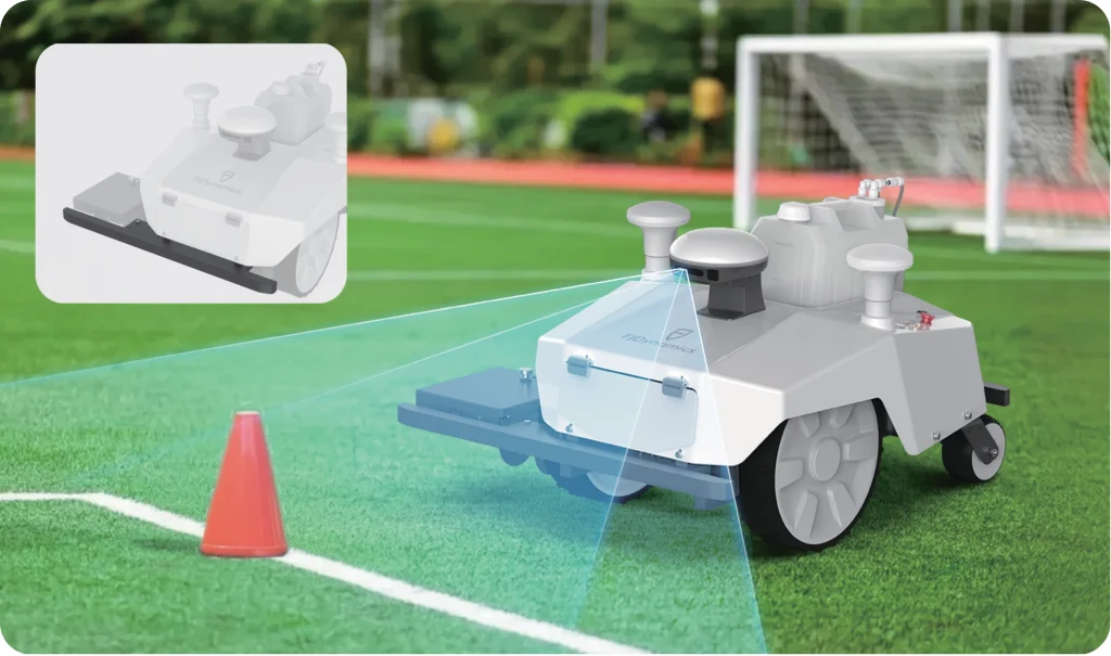 For environments where GPS signals are typically unstable — such as near grandstands or under tree coverage — the optional laser kit enhances precision even further, reaching millimeter-level marking accuracy.