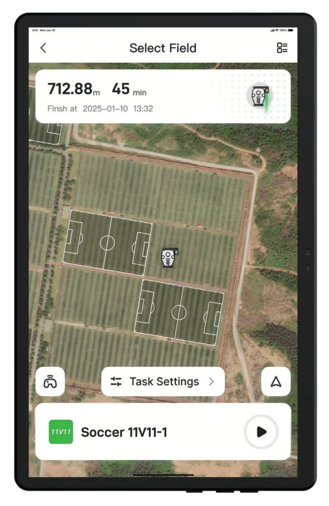 Built with industrial-grade positioning technology and smart automation, it transforms the way sports fields are marked — saving time, reducing costs, and delivering professional results every single time.