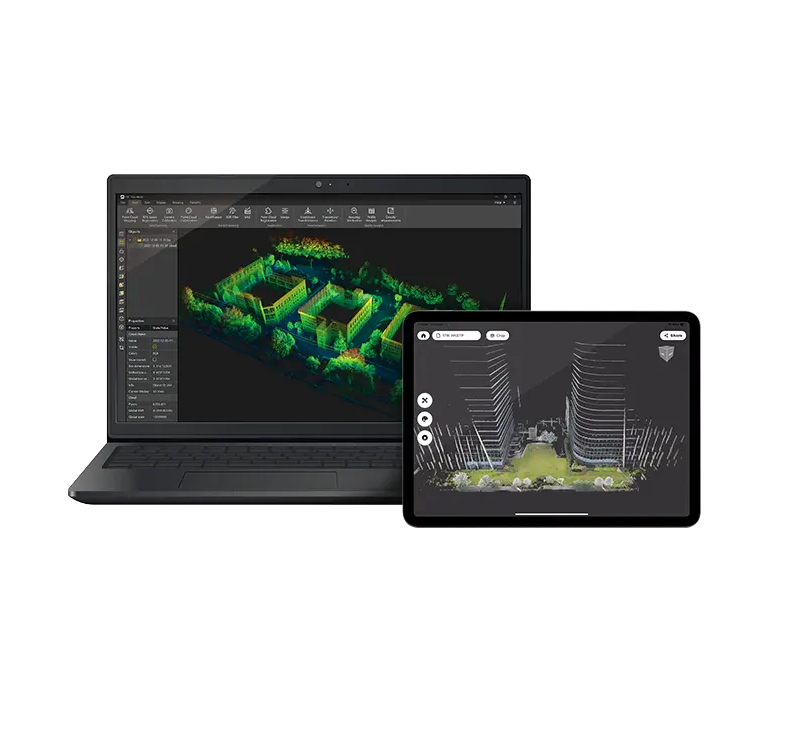 • Seamless Export: Supports standard geospatial and CAD formats including .LAS, .PLY, .DXF, and .OBJ for integration with third-party software.